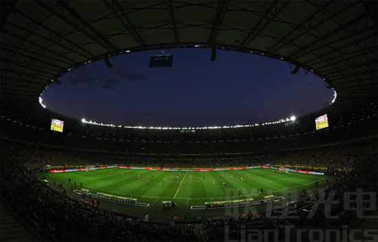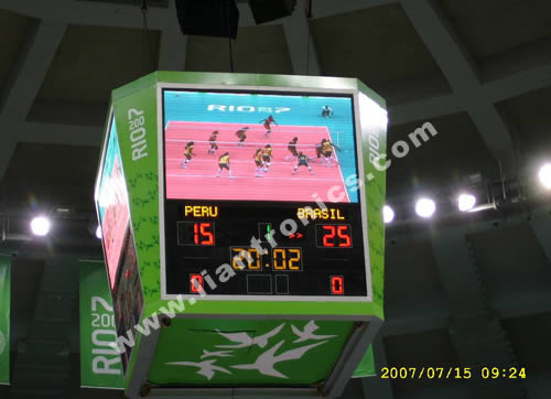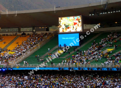 2007年7月,第十五届泛美运动会开幕式在巴西里约热内卢的马拉卡纳球场举行,赛场安装的高清LED显示屏成为开幕式主场的一个亮点。联建光电为本次比赛提供了四块PH6室内全彩屏和二块PH20室外全彩屏,同时打破了传统壁挂、立柱的安装方式,均采用了吊装方式,这些LED显示屏高清晰的显示效果充分地表明了我们的产品是“中国制造,欧美一流品质”。