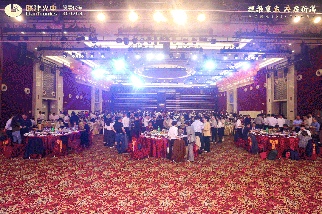 宴会在热烈的气氛中拉开帷幕。首先由联建光电董事长谭炜樑先生进行了致辞,他对过去一年里所有员工的辛勤付出表示感谢,也对新的一年提出了新的期望和要求。他表示新的一年,在联建这艘大船上,大家都能够有所收获,在大家的携手努力下,一定会让这艘大船开得更远更稳!