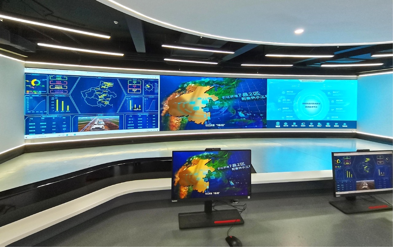 在这国家重要工程中,联建光电凭借其卓越的技术实力和丰富的行业经验,为珠三角水资源配置工程点亮多块大屏,其中更是在总部调度中心量身打造了一块COB指挥监控大屏。