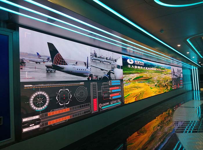 由联建光电为海口美兰机场打造的智慧显示应用解决方案位于3C指挥大厅,采用小间距P1.4产品,分辨率达12160*1440点,超高清显示效果获得了项目相关领导高度认可。联建光电智慧大屏通过搭乘信息化数字系统,可成功实现对航班、旅客、行李、货邮、交通五大业务流的全局实时监测,助力决策者快速掌握机场整体态势,提升了机场智慧调度水平,确保机场高效运行。