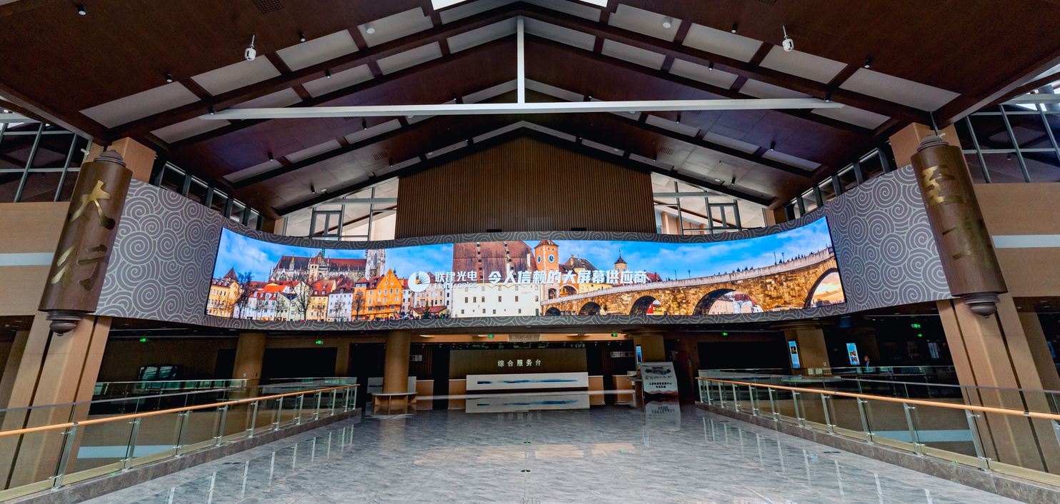 为了匹配景区整体的改造升级,打造景区核心竞争力,提供更加人性化的服务,增强游客观赏体验,也为了方便景区管理,此次联建光电为景区游客中心打造了3套LED电子显示系统,应用于宣传展示、沉浸式体验等场景。屏幕采用L Pro 和 L Plus渠道产品,总面积近200㎡,高清高刷的显示效果和任意拼接、稳定节能的产品特性,能够满足宣传展示以及沉浸式体验的多种场景需求,承担着向游客展示景区宣传片、景区管理规定、紧急事项公告等内容的重任。