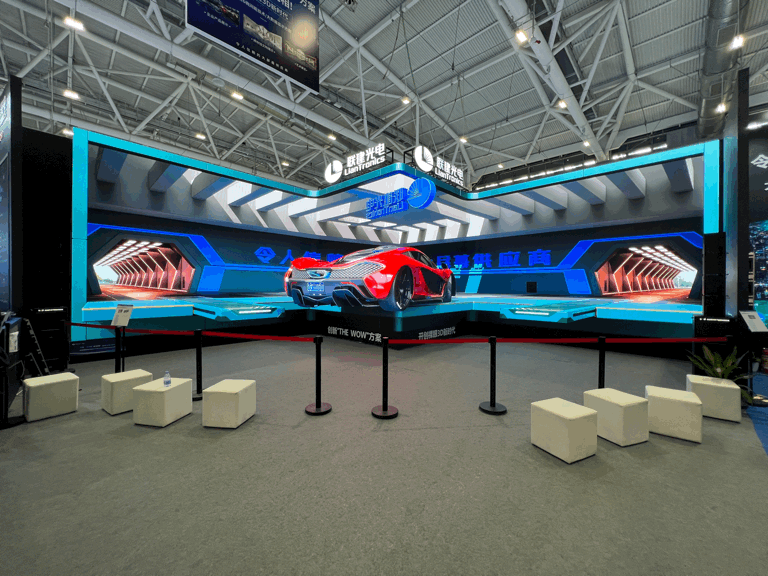 后疫情时代,联建光电蓄势待发。在本次展会上,联建光电携“THE WOW”裸眼3D方案在国内展会上首次重磅亮相。经过五次裸眼3D弧形显示算法迭代升级,7屏7面“W”3D造型最优屏体设计搭配定制内容视频,震撼的多维视觉效果使之在ISLE展会上一枝独秀,强势出圈。