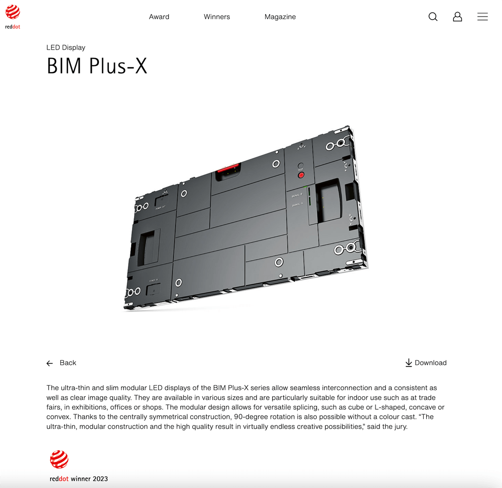 近日,2023年德国红点设计大奖名单公布。联建光电VAIII系列微间距显示屏、Pilot Pro系列租赁显示屏、BIM Plus-X系列室内商业显示屏三款产品同时斩获素有设计界“奥斯卡”之称的红点设计奖,这三款产品凝聚着全球前沿技术和创新设计,实至名归。据统计,联建光电是2023红点奖中获奖最多的LED显示品牌。