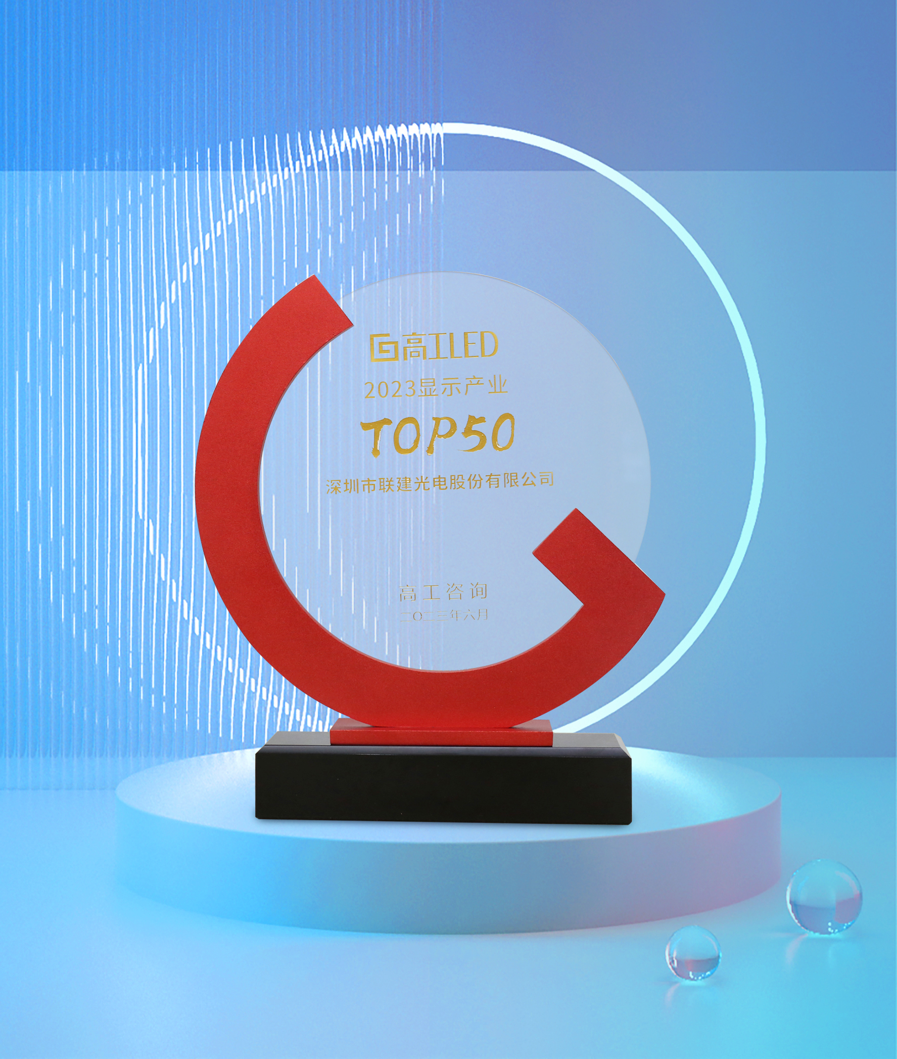 会后的颁奖典礼上,联建光电荣获高工LED 2023显示产业TOP50的殊荣,这是业内给予联建光电深耕行业20年的认可。