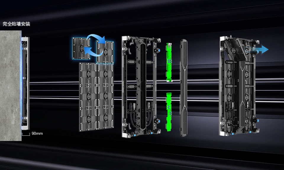 箱体和模块预留45度切角设计,轻松实现90°直角拼接、柱形屏拼接,百变造型更吸睛